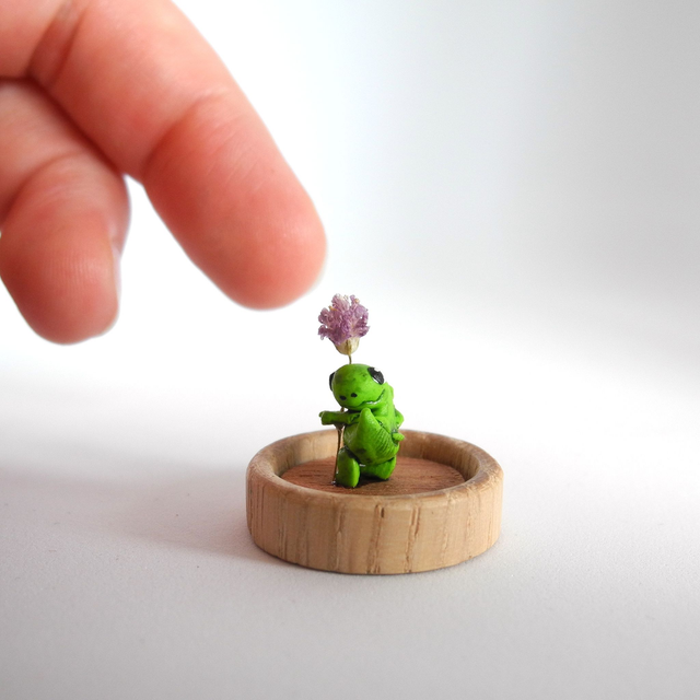 Dinosaur presenting a little flower - miniature pendant in collaboration with @minidinosaur_comics
