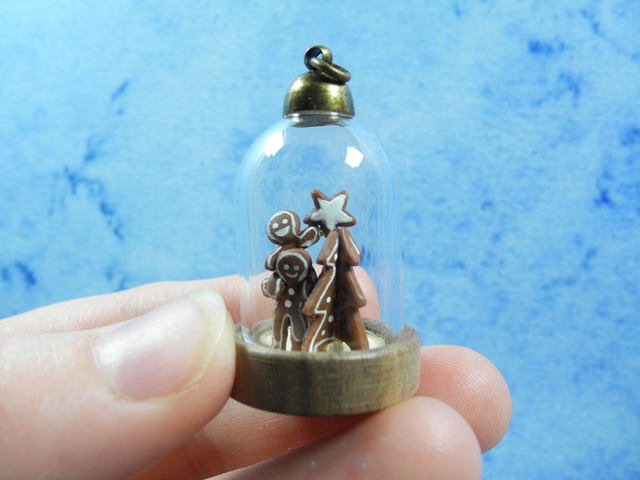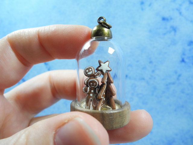 Gingerbread Christmas Decoration Pendant - Miniature Jewelry - Biosphere Pendant - Miniature Diorama - Snowglobe jewelry - Winter jewelry