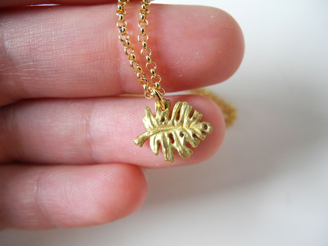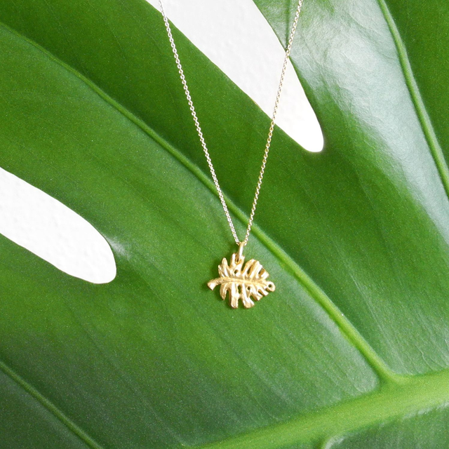 The delicate design of this Monstera pendant lies in stark contrast to the rather big and fleshy leaf that served as inspiration from it, without compromising any of its natural beauty. The resulting necklace is daintily enhances any outfit without being overwhelming.