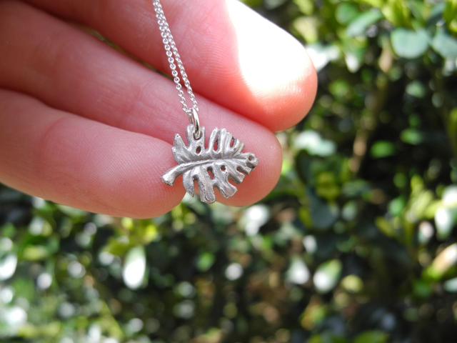 The delicate design of this fine silver Monstera pendant lies in stark contrast to the rather big and fleshy leaf that served as inspiration from it, without compromising any of its natural beauty. The resulting necklace is daintily enhances any outfit without being overwhelming.